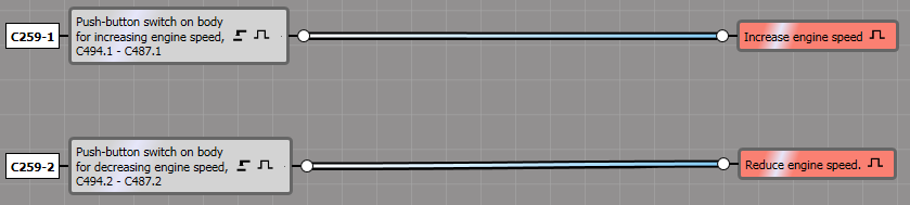 • The engine speed will increase if a low or high signal1 is activated via pin 1 (optional) in harness-to-harness connector C259.