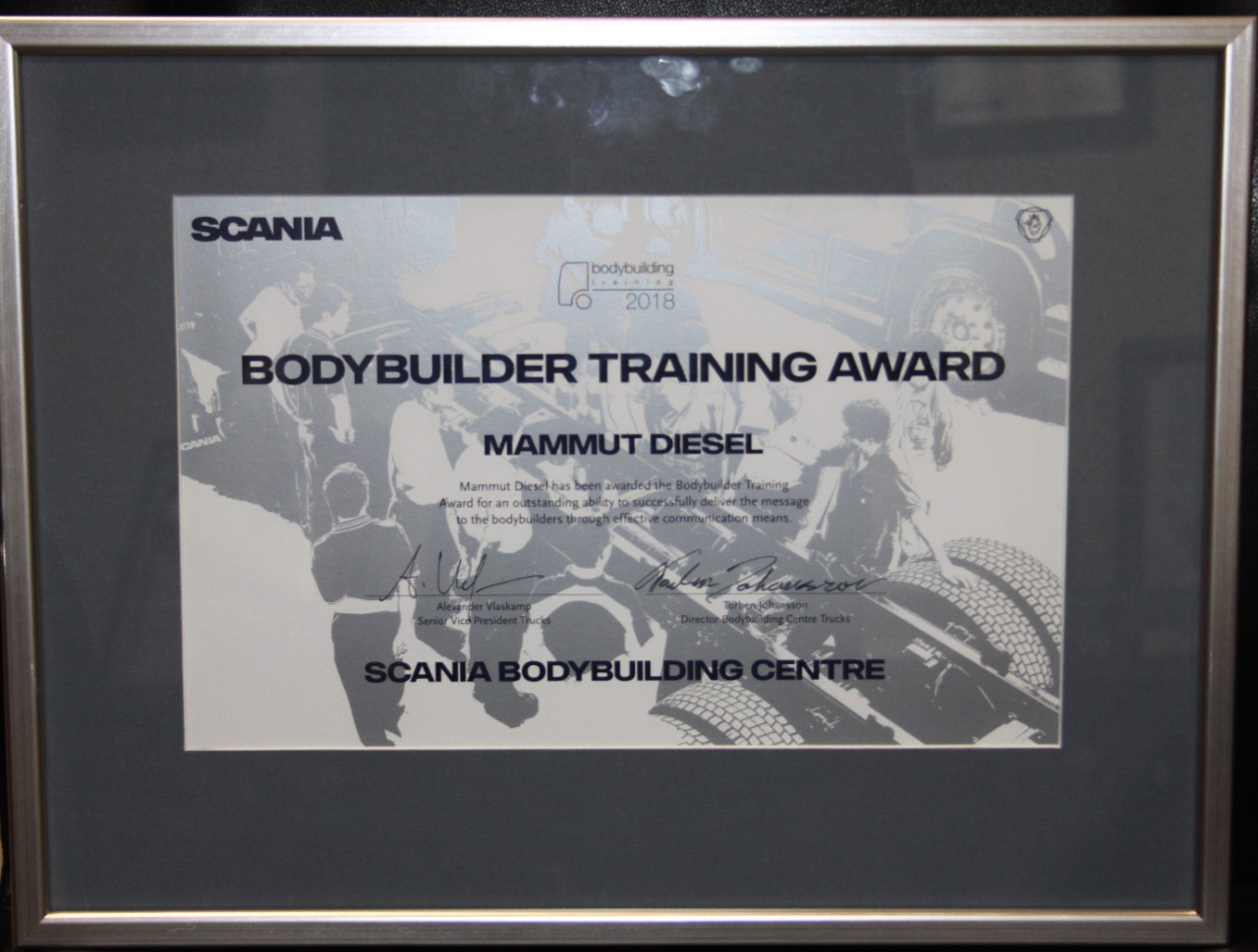 جایزه ویژه آموزش کاربری سازان اسکانیا در سال 2018 به شرکت ماموت دیزل تعلق گرفت